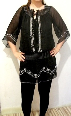 Krásná šifonová tunika. Vhodná k legínám či kraťasům.Skěle sedí. Dá se nosit klasicky nebo na holá ramena.Velikost psána XL, ale díky střihu je UNi.Jednou nošená, prakticky nová.