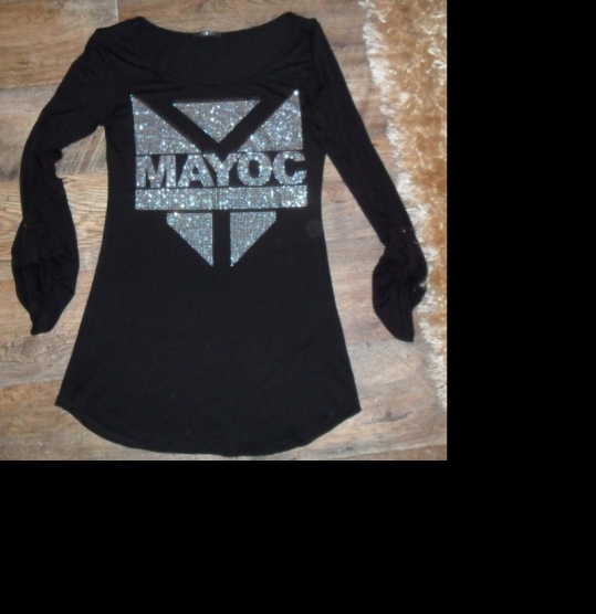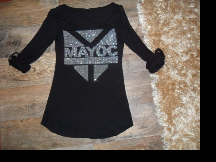 predám krásnu tuniku s kamínkovým potiskem zn. mayo chick Rukávy tejto tuniky jsou regulovatelné a daji se udělat na 3/4 délku.tunika sě hězky přispůsobí tělu ,jedinou vadou je že chybí 2 kamínky,při nosení neviditelná vada.