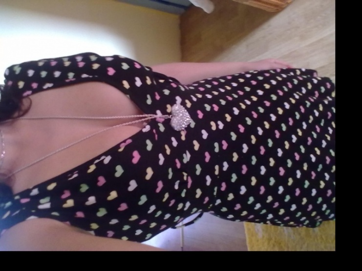 Prodám černou tuniku s potisky - tvaru srdíček .