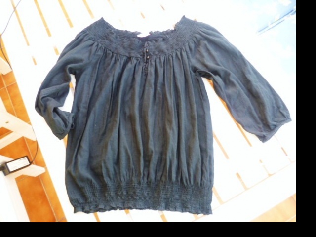 0Prodávám asi 2 krát nošenou černou halenku/košili z Orsay. Dole a nahoře je do gumy. Nahoře tři ozdobné knoflíčky. Halenka a rukávy jsou balónového střihu. Cena 250 Kč + poštovné.