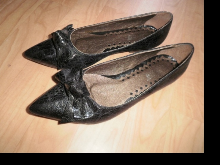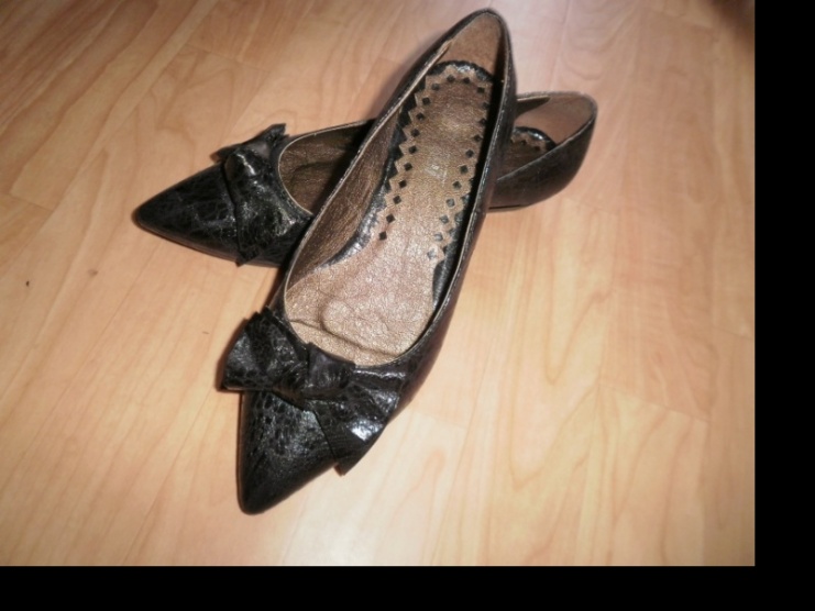 Prodám černé balerínky do špičky s mašlí - na světle hazí spíše odlesk do tm. modra..