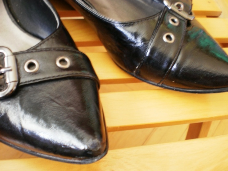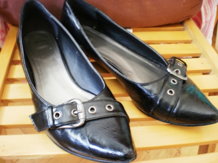 Nabízím černé balerínky/nízké lodičky do špičky na nizoučkém podpatku z obchodu CCC, značka Clara Barson. Velikost je 39, ale já nosím 38 a jsou akorát. Botky prodám za symbolickou cenu, jsou hodně nošené, špička je trošku okoplá a ze spodu jsou botky hodně odřené od štěrku, ale jinak se v nich dá dál pohodlně chodit. "Podpatky" jsou taky schozené, ale na chození to nemá žádný vliv (zespodu nikdo nevidí.