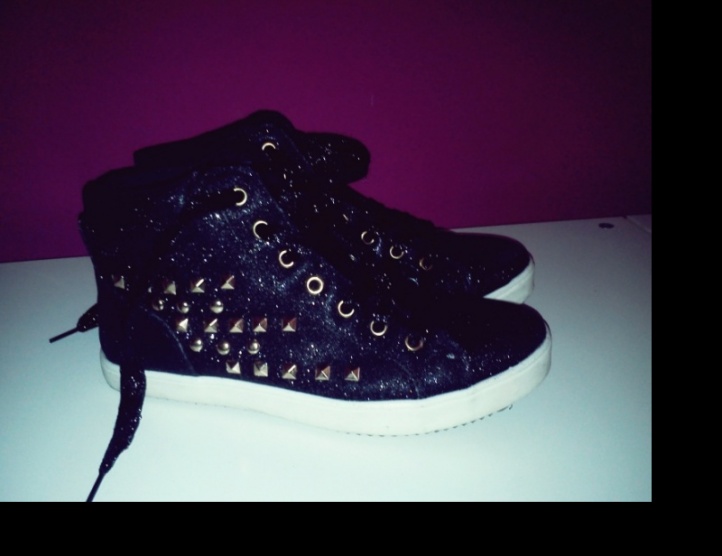 1Prodám černé,třpytivé tenisky se zlatými cvočky.