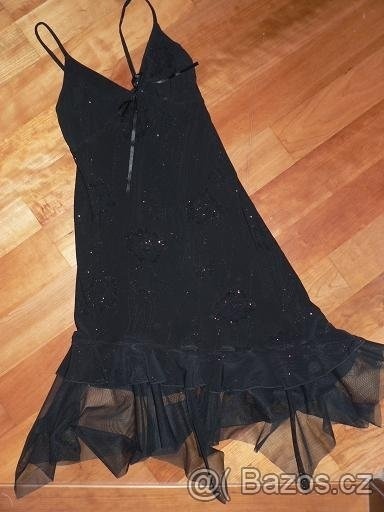 Nabízím společenské černé dlouhé šaty ze stříbrným zdobením