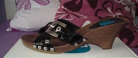 0Prodám tyto krásné "dřeváčky" Baťa. Měla jsem je pouze jednou, takže jako nové. Bez vad. Barva je černá - lesk.