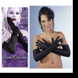 Nové dlouhé elastické rukavičky vhodné např. na plesy, do tanečních atd. Velice elegantní, vzhled saténu. Zn. Cottelli Collection. 90% Polyamid, 10% Elastan.