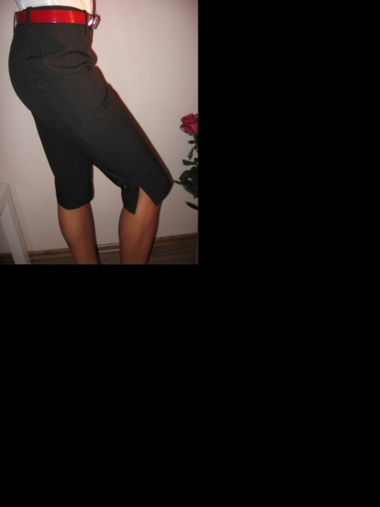 Prodám jednou vztaé černé kraťasy ke kolenům, elegantního střihu s puky a vyšším pasem.