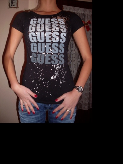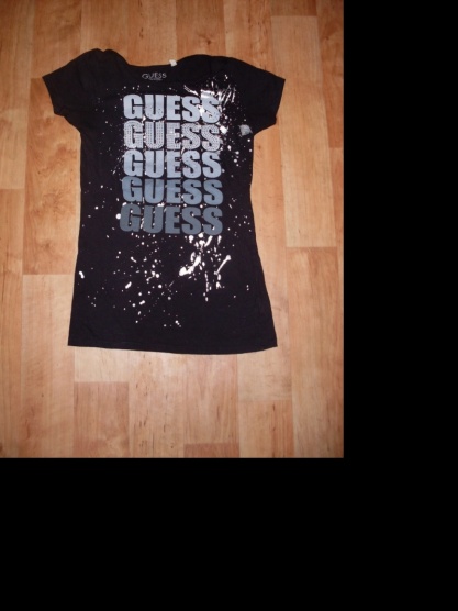 Prodám párkrát vzaté černé Guess tričko s nápisy a kamínky.