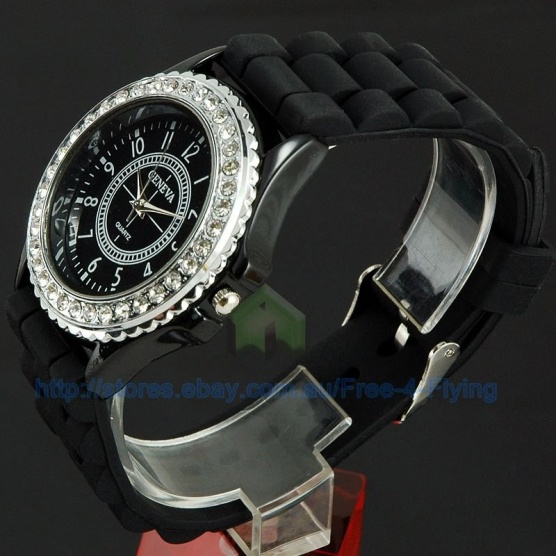 Nabízím krásné černé hodinky s kamínky značky Geneva. Hodinek mám dost a bohužel neunosím. Jsou nové, ještě v původním obalu. (foceno mobilem proto nekvalitní foto)