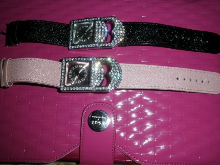 Nové černé hodinky s třpytivým ciferníkem, moc krásné. Neunosím.