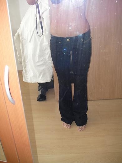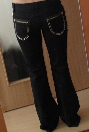 NIKDY nenošené černé kalhoty s rozšířenými nohavicemi a zlatými prvky na kapsách. PC 600,- přenechám za 400Kč + 50Kč poštovné