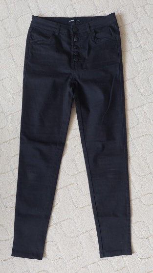 pěkné rifle do pasu, pohodlné, pružné, zapínání na knoflíky, tenčí materiál 70% bavlna, 27% polyester, 3% elastan, jako pláťáky, minimálně nošené, jako nové, bez vad, délka 96 cm, pas 34 cm, boky 43 cm, vnitřní délka nohavice 71 cm, Zásilkovna 79 Kč