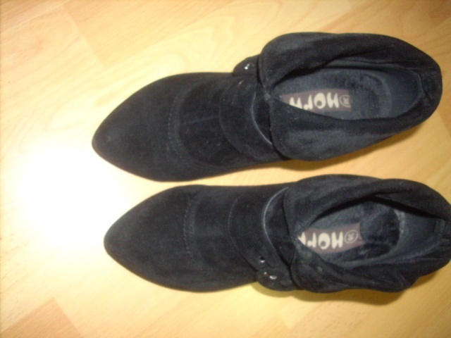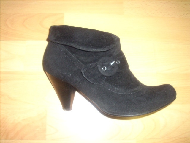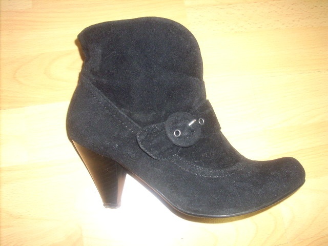 Černé kotníčkové boty na podpatku. Málo nošené, neunosím je. Jsou naimpregnované proti promoknutí. Nemají okopané špičky, nošení je znát na podpatcích, ale není to nic hrozného. Vrchní část se dá ohnout.