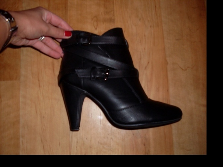 Prodám jednou vzaté černé kotníčkové kozačky s přezkami a s módní kulatou špičkou.