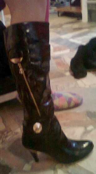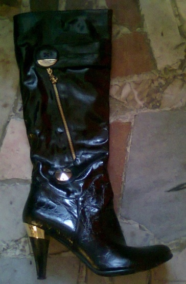 0Jednou nošené vysoké kozačky - velikost 41. Černý lesklý materiál + zlaté doplňky. Zapínání na zip. Poštovné a balné 80 Kč.