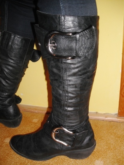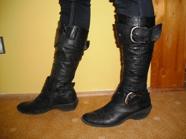 0Prodám velmi zachovalé pohodlné kozačky, málo nošené. Jsou mi úzké přes lýtka(na fotce nejsem já). Ozdoby jsou stříbrné barvy, foto mírně zkresluje. Navrhuji Cenu: 170 kč a 60 kč pošta.