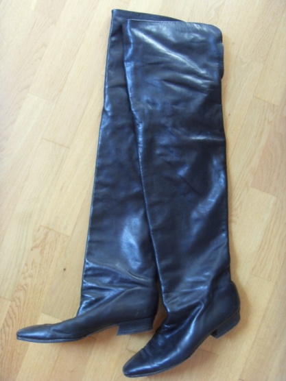 Podpatek meří cca 2cm, délka od paty je 57cm (jsou nad kolena a drží až na stehnách. Ze zadní strany mají nahoře malou natahovací gumičku aby při chůzi nepadaly a držely na místě.)