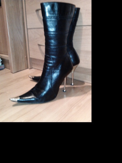0Prodám tyto krásné černé kožené kozačky Mativi, mají zlaté špičky a podpatek. Jsou nošené, ale nezničené, už je nevynosím