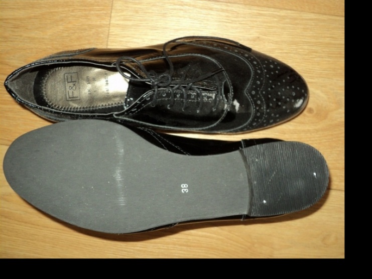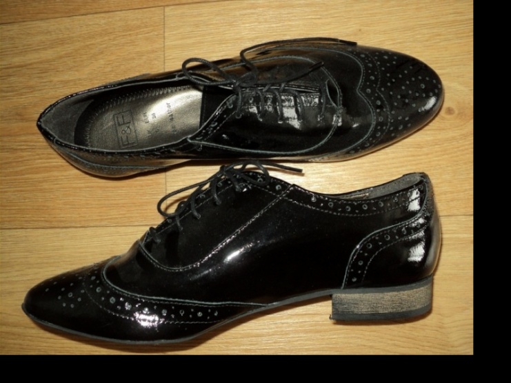 0Nádherné černé lakované Oxfordky F&F, vnitřek boty je kožený, velmi elegantní, mě jsou moc velké