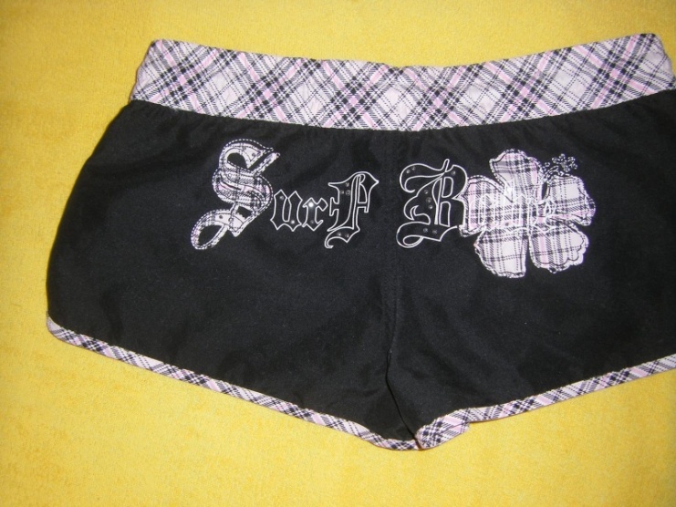 Černé kraťásky koupené v New Yorkeru, moc nenošené, protože mi jsou malé. Mají růžový nápis na zadku Surf Babe. Kraťasy se dají použít i jako spodek k plavkám. V případě zájmu dodám rozměry. Cena 200,- vč. pošty.