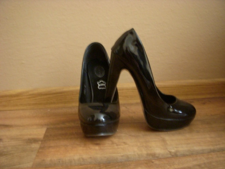 0Prodám černé lakované lodičky na vysokém podpatku. Velikost je psána 37, ale odpovídá 36. Výška platformy 2cm. Výška podpatku 11cm. Perfektní stav!! Poštovné 80,-