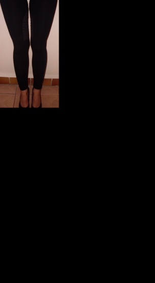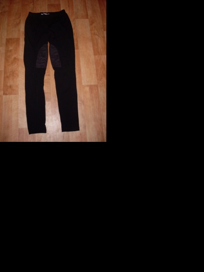 Prodám málo nošené černé legíny s jakoby jezdeckými vsadkami na stehnech.