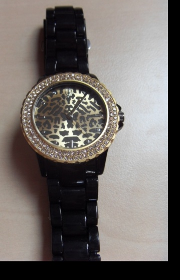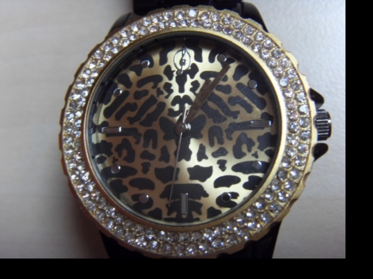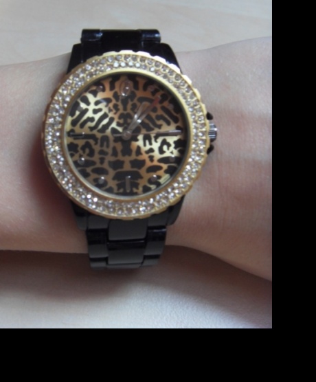 - leopardí ciferník, obložené stříbrnými třpytivými kamínky