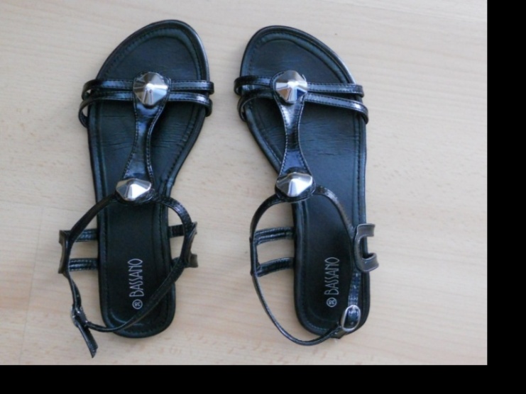 Černé lesklé sandálky - imitace kůže, zakoupenné v CCC v Palladiu. Vzaté max. 3x, mám radši světlejší barvy.