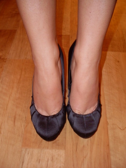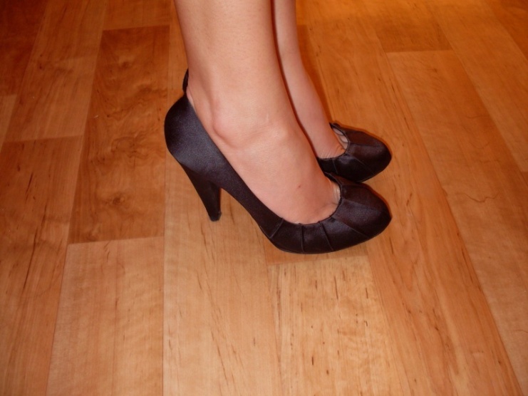 Prodám málo nošené černé saténové lodičky na stabilním podpatku.
