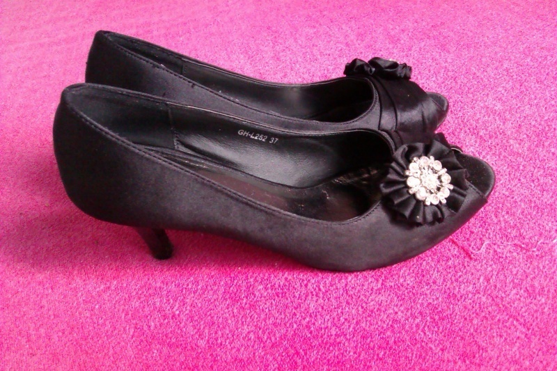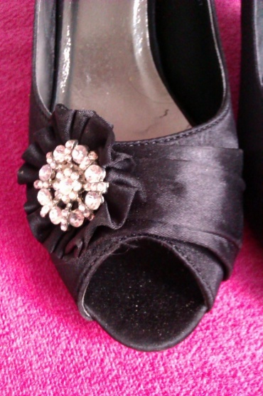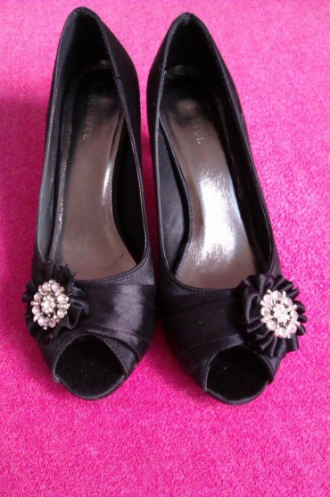 Prodám 2x vzaté černé lodičky s kamínkovou ozdobou. Vepředu otvor na palec. Cena 300 + pošta