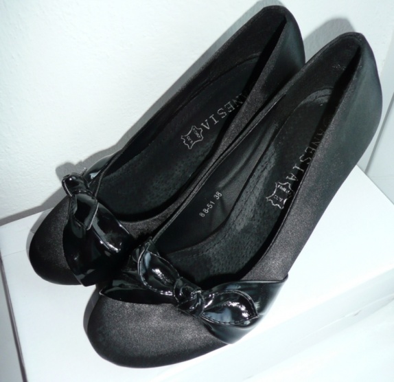 Prodám krásné černé lodičky kupované na allegru, jsou látkové, s lesklou lakovanou mašlí, velikost 38, bohužel ani tentokrát jsem netrefila veliksot-jsou mi velké a hlavně širší, mám strašně úzkou nohu , takže prodávám. Na tu 38 opravdu sedí.