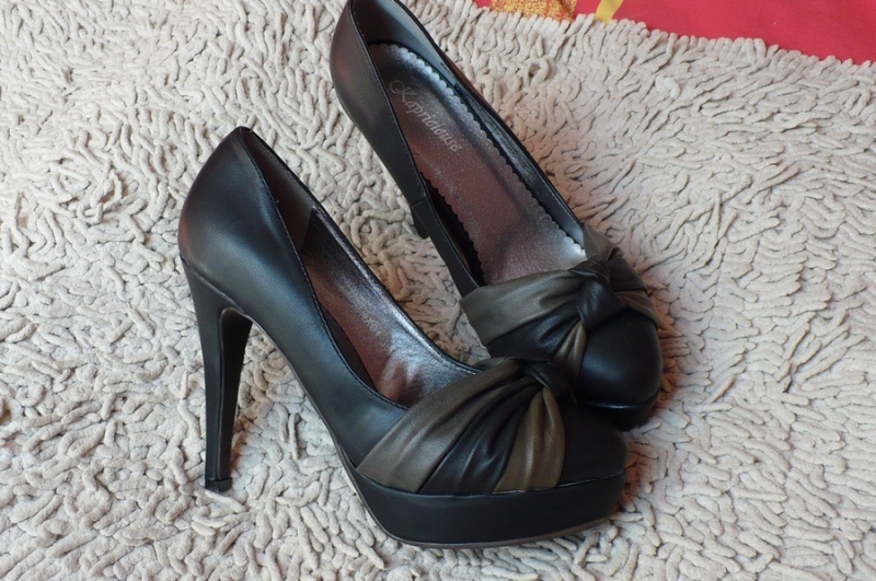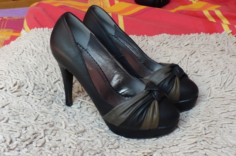 Nové, nikdy nenošené černé lodičky vepředu s překládáním v šedivo-černo-béžové barvě. I s původní krabicí a náhradními podpatky. Lodičky jsou pohodlné, skvělé na jaro a léto!