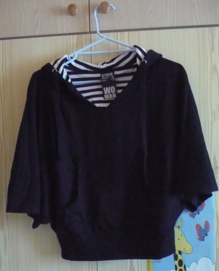 0Prodám dvakrát vzatou černou mikinu s netopýřími rukávy zn.Gate.Velikost je psaná S ale může jí nosit i ten kdo má XS.Mikina je velice slušivá.Cena 100,- Kč + poštovné