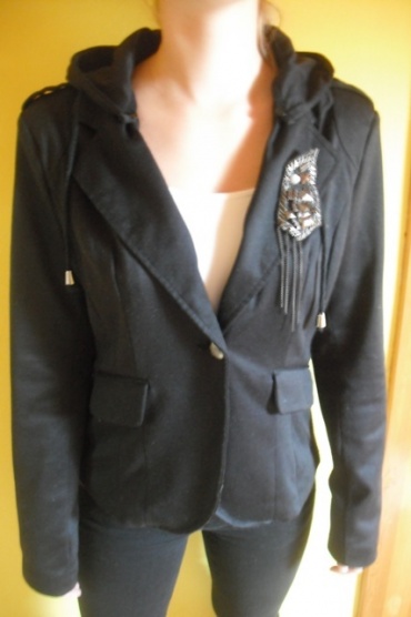 Prodám nošené sako z NY, vel. L, odpovídá. Brož se dá sundat, kapuce taky. Omlouvám se za fotky-foceno na ségře, která nosí velikost S, je jí velké. Upozorňuji, že na rukávu jsou trochu žmolky, proto cenu navrhuji 100 kč a pošta