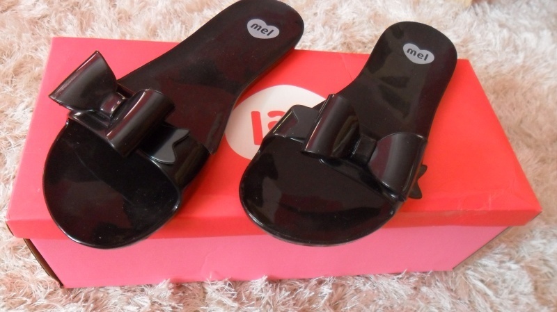 krásné úplně nové pantofle značky Mel v černé barvě s mašličkou, voňavé
