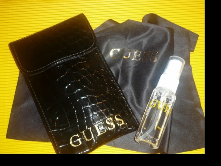 0Luxusní pouzdro Guess, barvy černé. Vhodné jako peněženka, pouzdro na mobil, tužky. K pouzdru přidávám hadřík na brýle i sprej Guess. Cena 500,- včetně poštovného.
