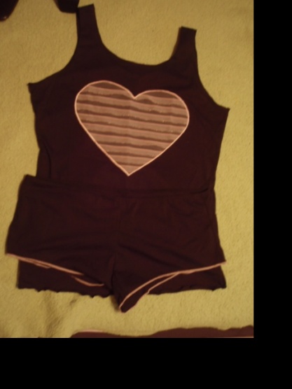 Černé pyžamo s růžovým srdíčkem a kratásky