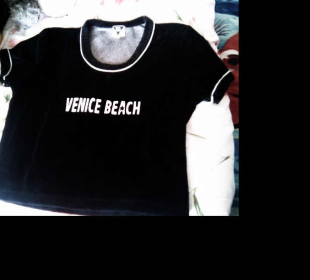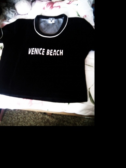 0Prodám hezké, dámské černé tričko s krátkým rukávem, s nápisem Venice beach, materiál: černý samet, velikost M.....nové, nenošené, 100 % stav