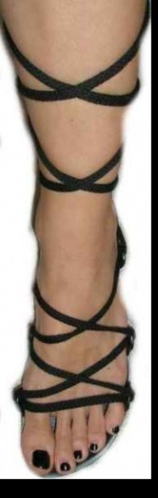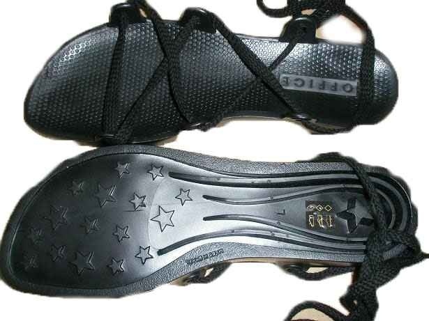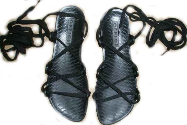 Text od první prodávající: Nabízím zajímavé černé sandály, silnější gumová podrážka, šněrování přes lýtko..kupované v Office v Londýně, asi dvakrát na noze, takže jako nové