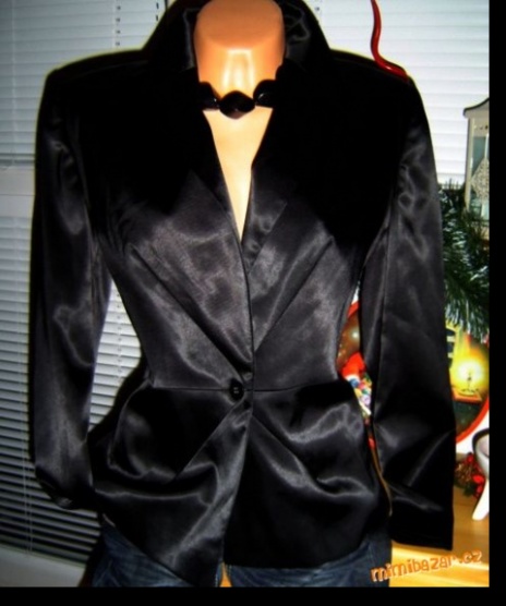 Nádherné černé saténové sako New Look, cedulku jsem odstřihla, ale odpovídá vel. 42, dělá krásnou postavu, bohužel mi nesedí přes hrudník a tak posílám dále
