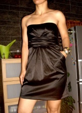 Prodám tyto krásné černé šaty bez ramínek značky Amisu. Vzadu se zavazuje mašle. Jsou naprosto boží, doporučuji. Mně už bohužel větší. Zakryjí případné nedostatky na břiše. Vzaté cca 4x, jsou v naprostém pořádku!