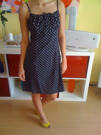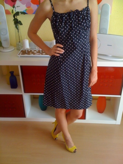 Černé šaty s bílými puntíky Amisu
