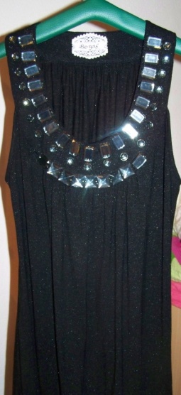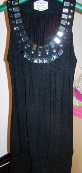 Prodám černé šaty se stříbrnými třpytky, horní díl posázený kameny, zakoupeny v butiku na Václaváku. Vel je uvedena M-L, myslím tak pro TOP, měla jsem je na sobě jednou na plese jako šaty, mám vel. S