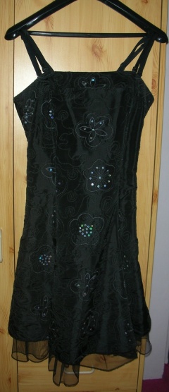 Černé, nad kolena dlouhé, flitry ve tvaru kytek. Zip po straně a vzadu šněrování.