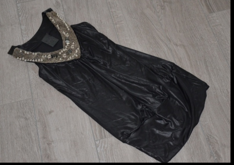 Prodám černé šaty. S ozdobou. délka 77 cm.