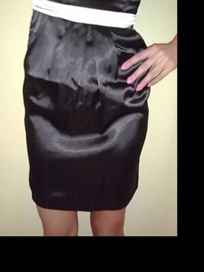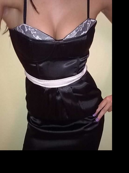 Prodám nenošené černé saténové šaty s krémovými vsadkami a prádlovým vrškem.
