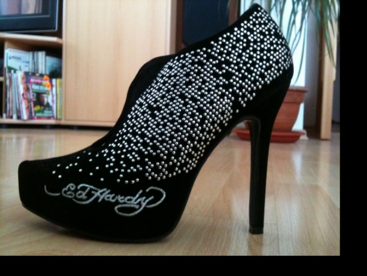 Nové nenošené boty ed hardy (uvnitř ještě cedulky) ve velikosti 7 tedy naše 38. Výška podpatku je 12 cm. Součástí balení jsou i náhradní podpatky. Cena 800,- Kč. Platba na účet, nebo na dobírku, nebo osobní předání v Praze. Případné dotazy ráda zodpovím.