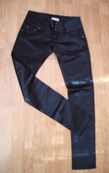 prodám tyto nové černé slim kalhoty,lesklý efekt.jen jednou vyzkoušené.míry: pas:38,boky:46,délka 102