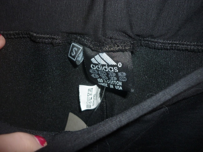 Prodám úplně nové černé sportovní kalhoty značky Adidas. Mají ještě cedulku. Velikost S. Prodávám, protože potřebuji M, jinak bych je nedala. Krásně pruží, super na cvičení. Na přední straně mají nahoře znak Adidas a dole 3pruhy s logem a nápisem Adidas - vše reflexní, proto se to špatně fotí s bleskem. Jsou černé, nikoliv šedé jak by se mohlo z fotek zdát. Délka 95cm. Nechám za 450Kč včetně pošty.