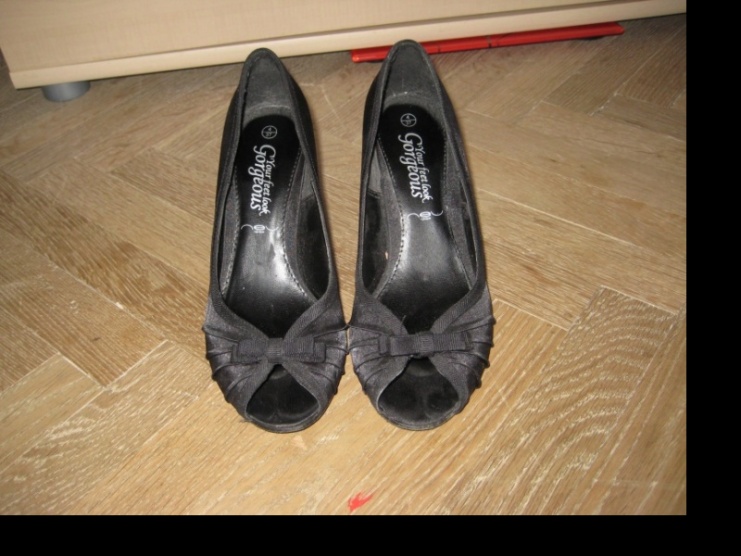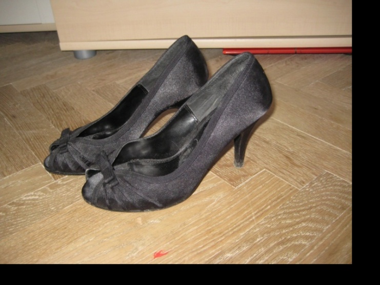 0Černé střevíčky, lesklá černá látka. Malinko nošené, jako nové. Elegantní , pohodlné. Velikost 37 , délka stélky 24 cm, velikost podpatku 8 cm. Cena 350 kč